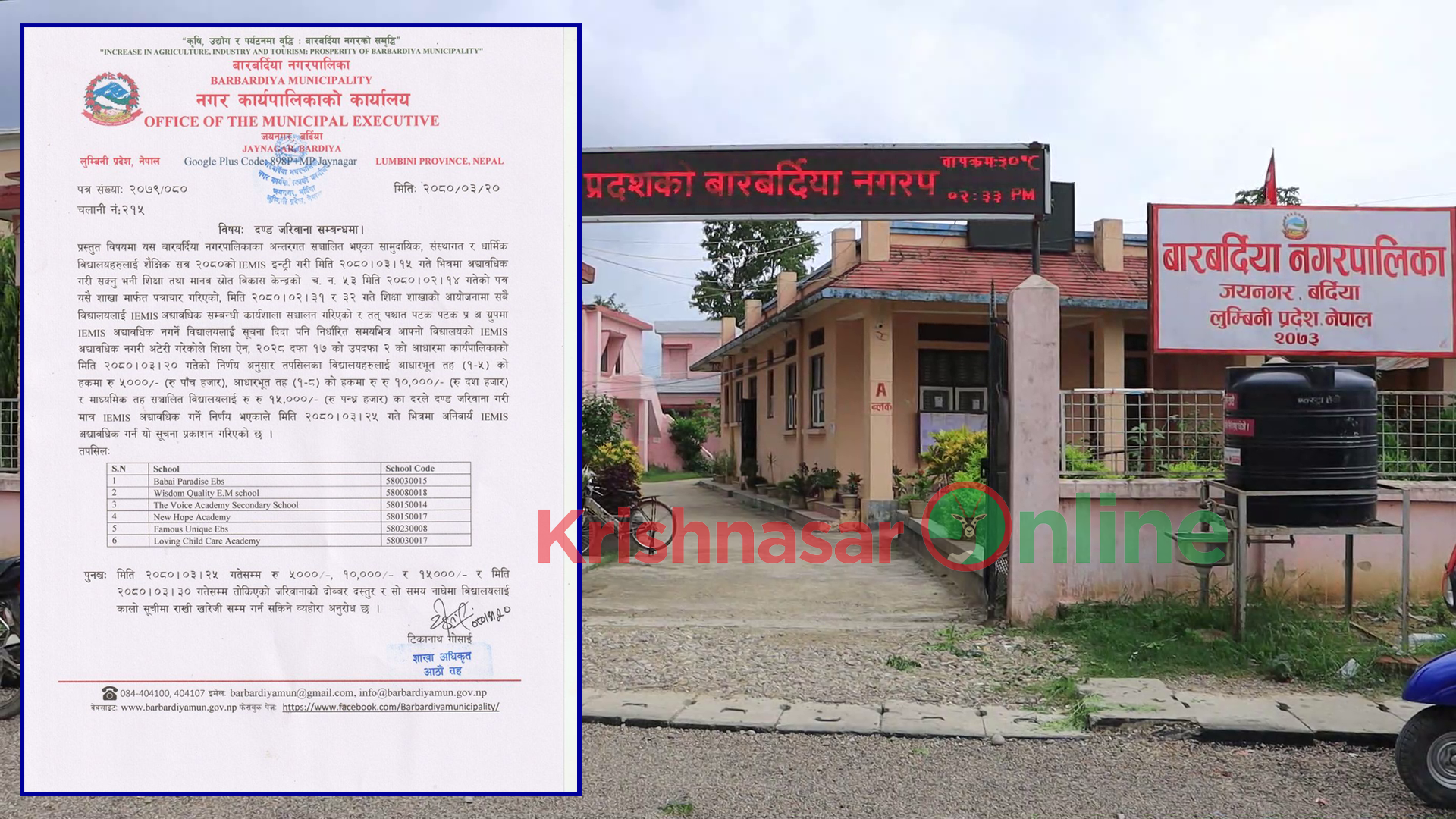 प्रकाश पाैडेल, बर्दिया। बारबर्दिया नगरपालिकाले पालिका भित्रका छवटा संस्थागत (बोर्डिङ) विद्यालयलाई कारवाही गरेको छ । पालिकाले एकीकृत शैक्षिक व्यवस्थापन सूचना प्रणालीमा सूचना अद्यावधिक नगर्ने उक्त विद्यालयलाई कारवाही गरेको हो ।