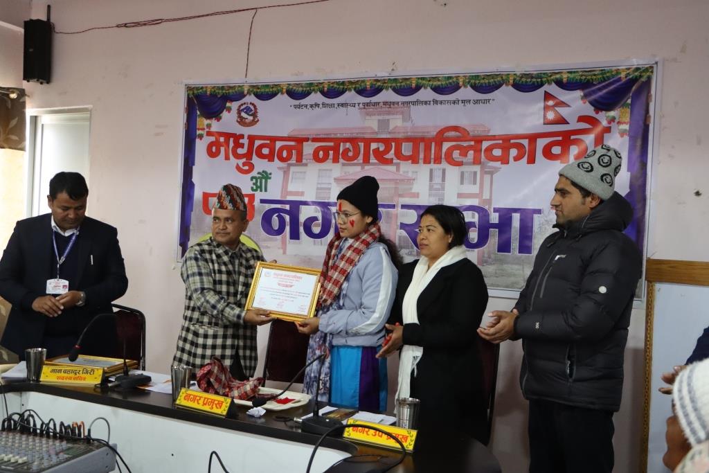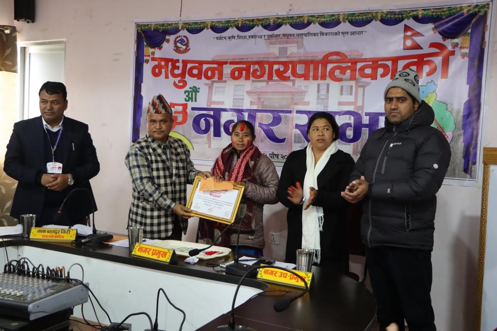 मधुवन नगरपालिकामा कार्यरत कर्मचारी रचना चौधरीलाई उत्कृष्ट कर्मचारीको रुपमा सम्मान गरेको छ । त्यसैगरी कार्यालय सहयोगीहरू चन्द्रा शाही र सोनपति थारूलाई उत्कृष्ट कर्मचारीको रुपमा सम्मान गरेको छ ।