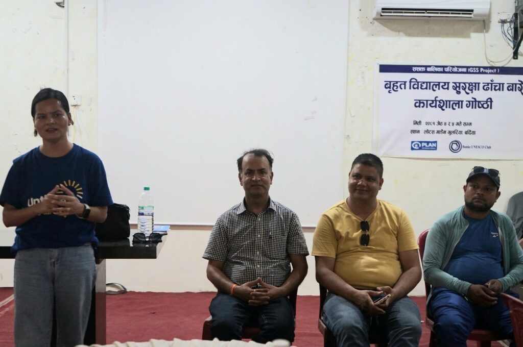 गुलरिया नगरपालिका रहेका तीन विद्यालयका २७ जनाको प्रतिनिधित्व हुने गरी बाँके युनेस्को क्लब र प्लान इन्टरनेसनलको आयोजनामा भएको कार्यक्रममा बृहत् विद्यालय सुरक्षा ढाँचा कार्यशाला गोष्ठी गरिएको छ । कार्याशाला गोष्ठीका विद्यालयका प्रधानाध्यापक, शिक्षक, विद्यार्थी, विद्यालय व्यवस्थापन समितिको सहभागिता रहेको छ ।