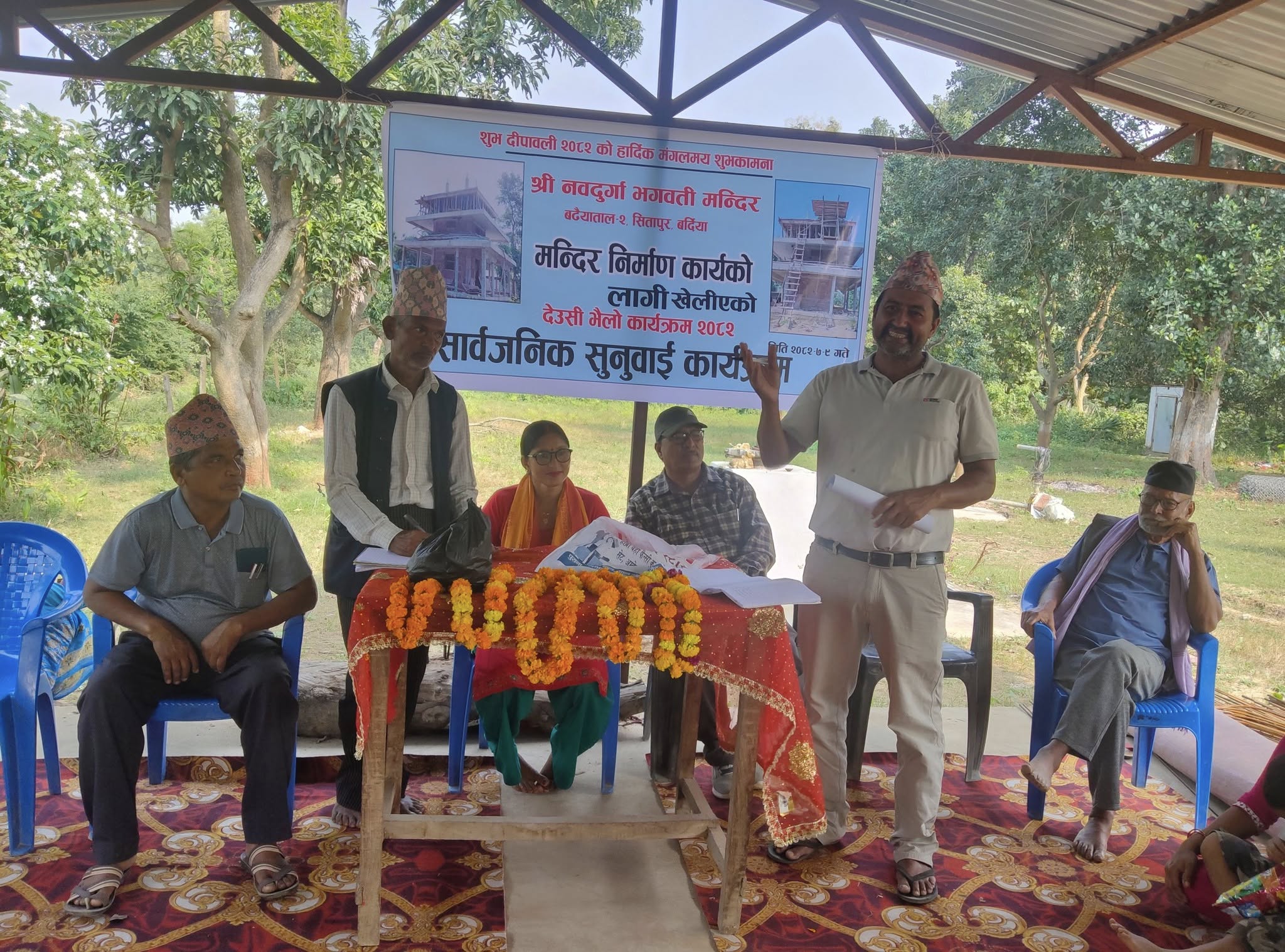 सीतापुर रहेको अम्मर ज्योति माध्यामिक विद्यालय स्कुल नजिक रहेको प्राचीन नवदुर्गा भगवती मन्दिर २०२९ सालमा स्थापना भएको थियो । स्थानीय भगवतीको मन्दिरमा पूजाआजा गर्दै आएका छन् । ०८१ सालमा धार्मिक महायज्ञ गरि करिब २४ लाख रुपैयाँ बचत गरी सोही रकम वाट निर्माण कार्य शुरु भएको ४ तल्ले प्यागोडा शैलीमा निर्माणधीन अवस्थामा रहेको छ । करिब करिव ४५ लाख रुपैयाँमा मन्दिर निर्माणको हुने मन्दिरमा पैसा लगानी गर्ने निर्णय भएको स्थानीय समाजसेवी बगालले बताउनु भयो ।