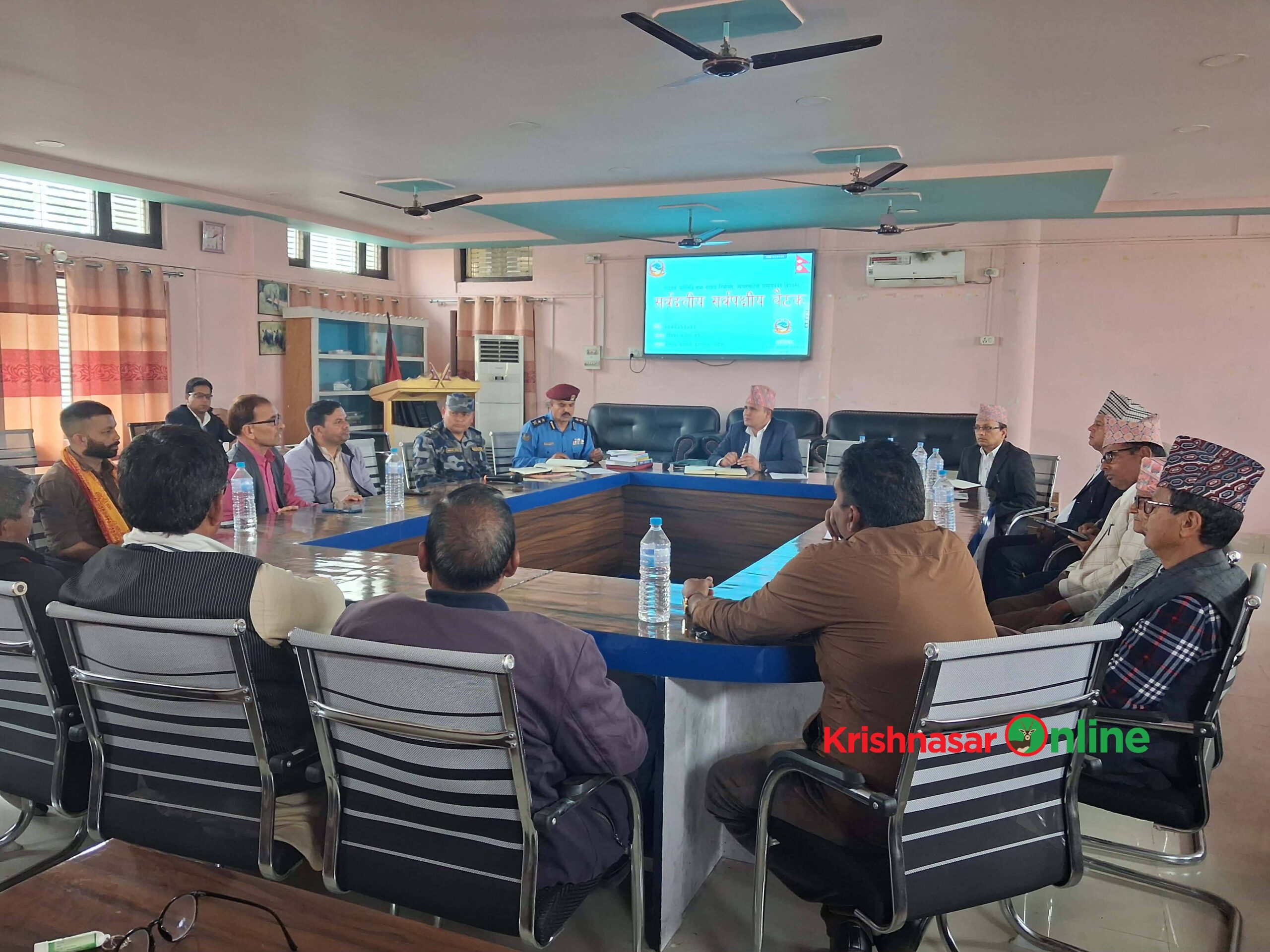 जिल्ला प्रशासन कार्यालयमा भएको सर्वदलीय सर्वपक्षीय बैठकमा राजनीतिक दलका नेताहरू, धार्मिक अगुवा, नागरिक समाजका प्रतिनिधि, सुरक्षा निकायका प्रमुख, कार्यालय प्रमुखलगायतको सहभागिता रहेको थियो ।बैठकमा रङहरूको पर्व होलीलाई सदभावपूर्ण रूपमा मनाउन र निर्वाचनलाई शान्तिपूर्ण रूपमा सम्पन्न गराउन सरोकारवाला निकायलाई जिम्मेवार बनाउन बैठकको आयोजना गरिएको जिल्ला प्रशासन कार्यालयले जनाएको छ।