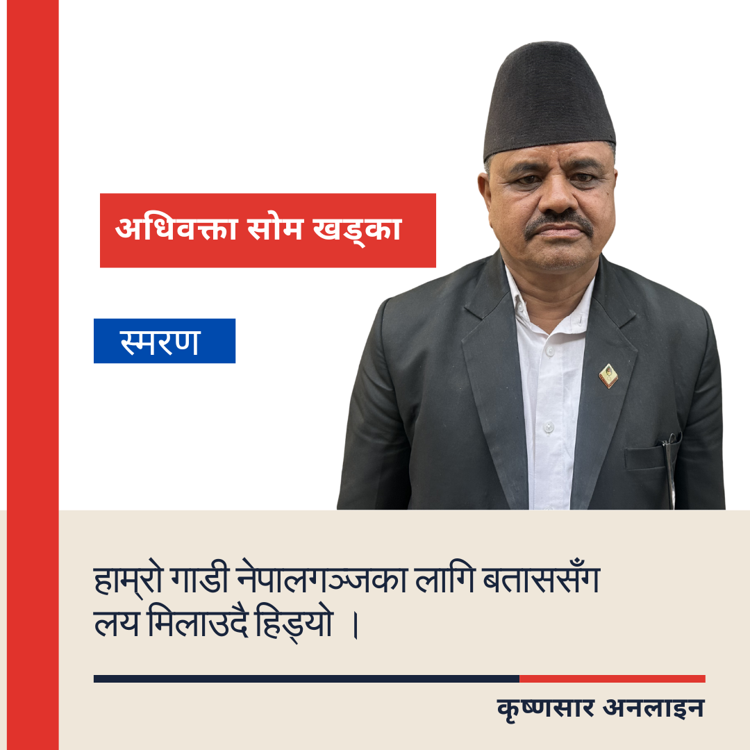 अधिवक्ता सोम खड्का । त्यस दिन निकै ठूलो झरी परेको थियो । त्यो समय वि.सं. २०५१ साल साउनको अन्तिम तिरको हो । कामको सिलसिलामा म घरबाट धनगढी हिँडेको थिएँ । त्यतिबेला म नेपालगन्जमा रहेर कानूनको अभ्यास गरि रहेको थिएँ । एकदिन कालिकोटका एकजना क्लाइन्ट धनगढीमा आफुलाई परेको मुद्दाको फिराद र म्याद लिएर आए । त्यो मुद्दा मैले हेरिदिनु पर्ने भयो । मैले उनीबाट आवश्यक सबै विवरण लिएँ । भोलि पल्ट मैले प्रतिउत्तर पत्र तयार पारेँ । उनीसँग भेट भएको तेस्रो दिनमा हामी नेपालगन्जबाट धनगढी तर्फ हिँडेका थियौ । त्यतिबेला नेपालगन्जबाट धनगढी जाने पहिलो बस बिहान ५ बजे नै छुट्ने गर्दथ्यो । त्यस दिन उनले मलाई डेरामा जान दिएनन् । हामी पुष्पलाल चौकको एउटा होटेलमा बस्यौँ । बिहान आफ्नो समयमा बस छुट्यो । नेपालगन्ज देखि धनगढीको लागी हाम्रो यात्रा सुरु भयो । हामी त्यो बसका यात्री भयौँ । हाम्रो गन्तव्य थियो धनगढी । त्यतिबेला कर्णालीको पुल बनी सकेको थियो । नेपालगञ्जबाट कर्णालीसम्मको बाटो राम्रै थियो ।