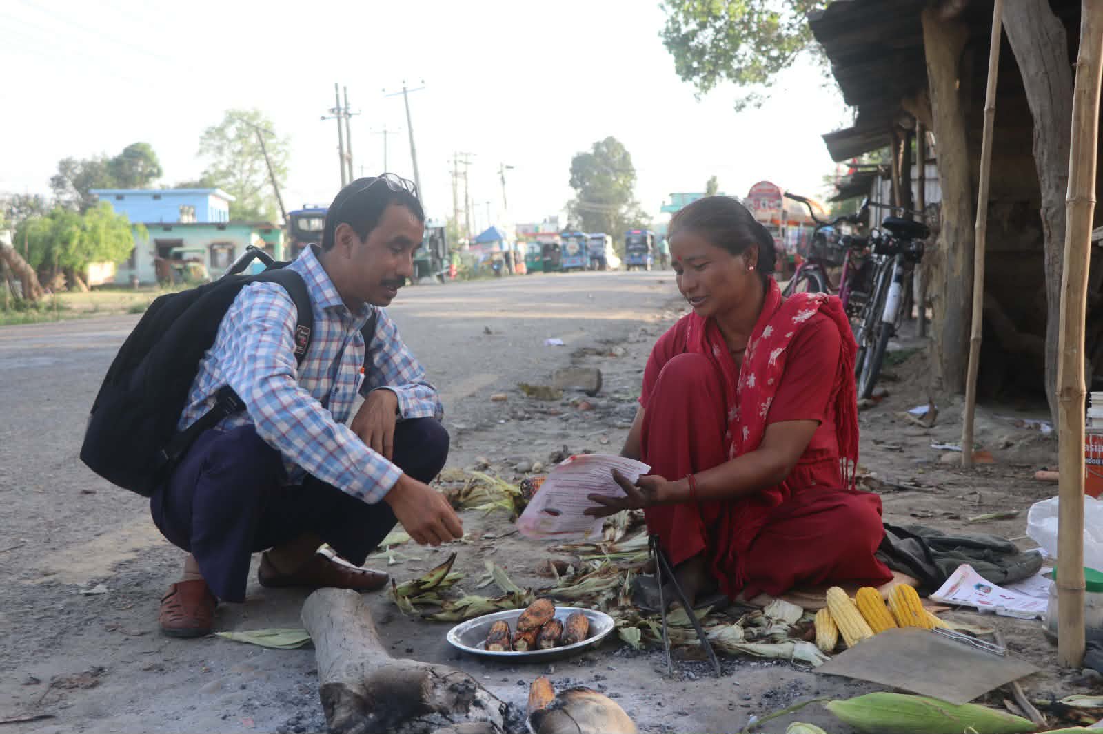 मकै पोलेर बेचिरहेकी निवर्तमान नगर उपप्रमुख शुबरानी अर्थात् कमरेड चेतना